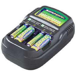 Batterieladegerät für NiMh Akkuzellen (Typ AA, Mignon) mit 12 Volt Eingang. Erhältlich ab ca. 50,- € von der Firma Accupower oder Ansmann. Damit kann man entweder zu Hause (220 Volt) oder an Bord (12 Volt) die Akkus die in sehr viele Geräte passen aufla den. Die modernen Geräte arbeiten elektronisch gesteuert und verlängern so die Lebenszeit der Akkus.